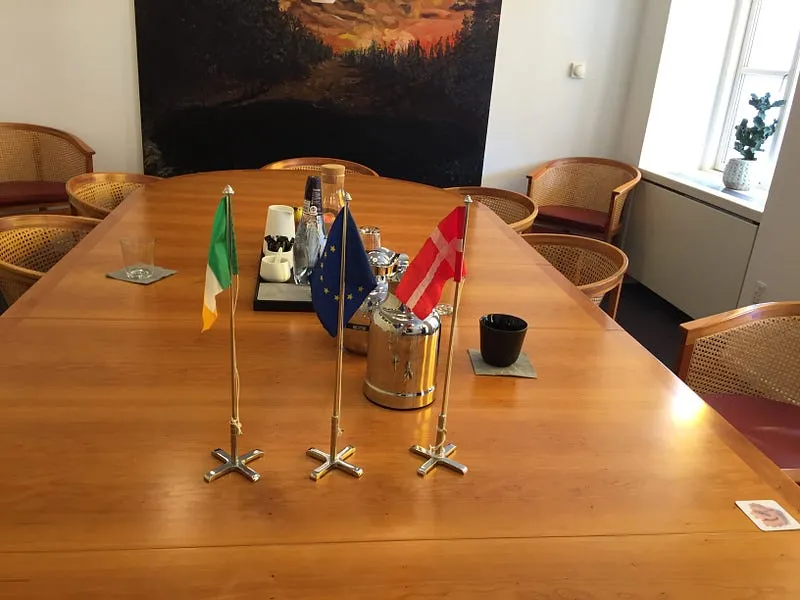 But enough about dress code, and onto the initial meeting between Fintech Ireland and Fintech Copenhagen. It was a somewhat informal affair (if you exclude the royal marching band — see part 1). And the flag ceremony.