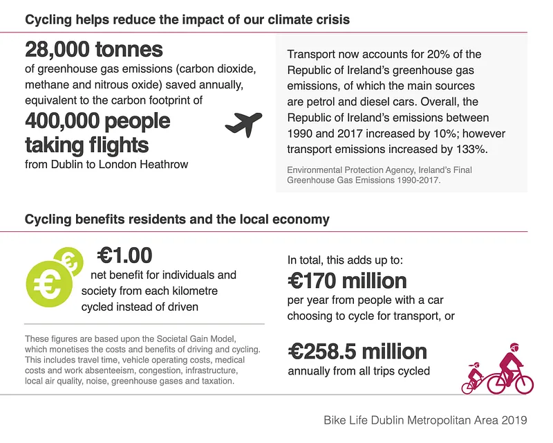 The Bike Life report published in 2020, covering the UK and Ireland, estimates a net benefit to society of €1 for every kilometre cycled instead of driven.